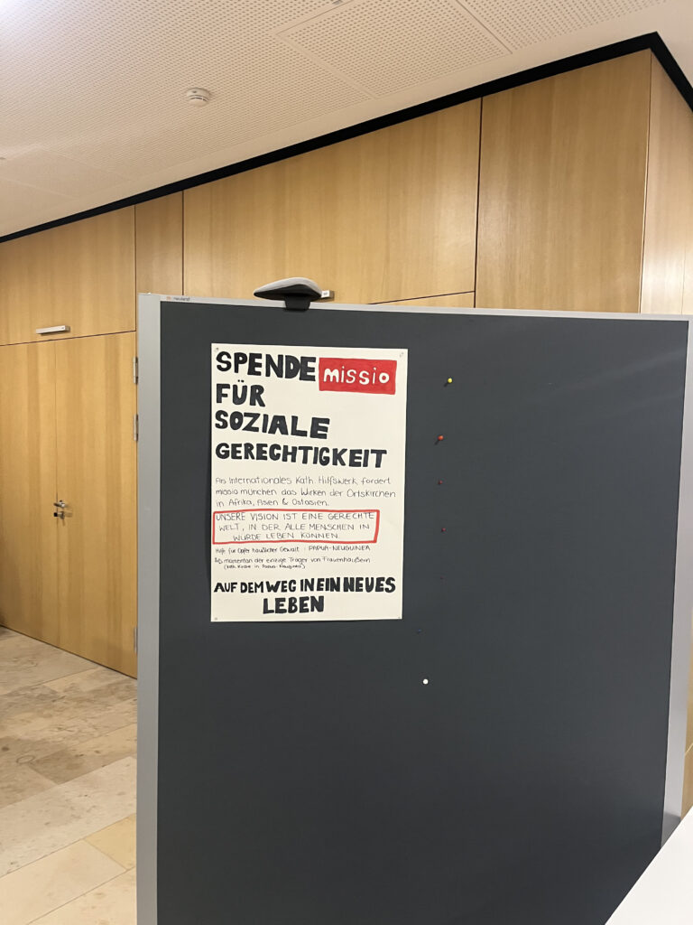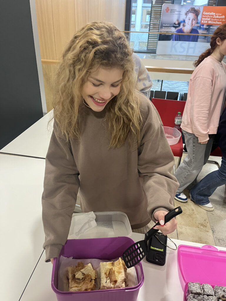 Als direkte Nachbarn beteiligten sich unsere Schülerinnen und Schüler der Klasse 12 A mit einem Spendenstand. Am Stand gab es selbst gemachte Kuchen und Gebäck. Die gesammelten Spenden gehen an die Organisation von Sr. Thecla Gamog, die das Schutzhaus für Frauen der katholischen Kirche in Alexishafen leitet.
